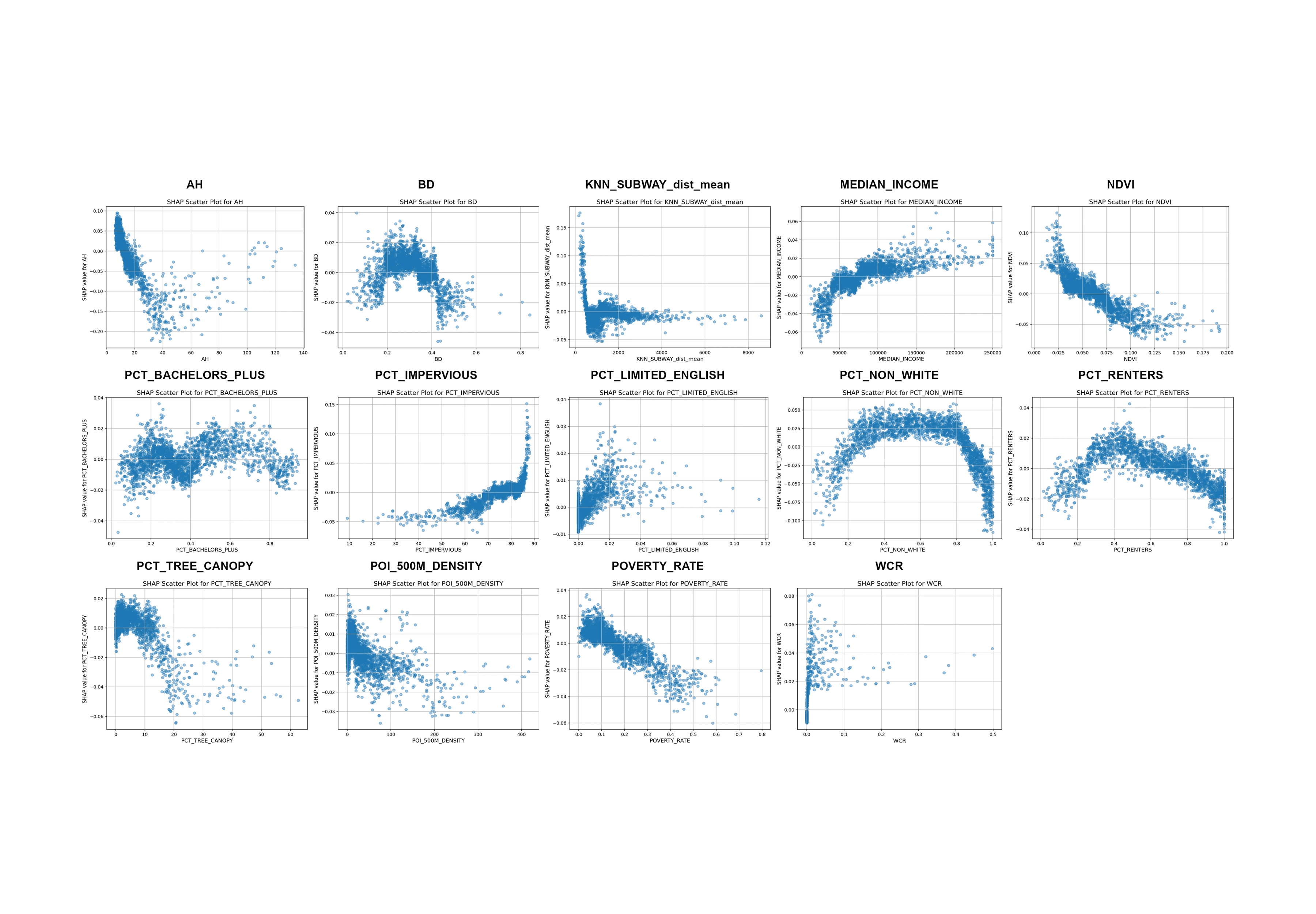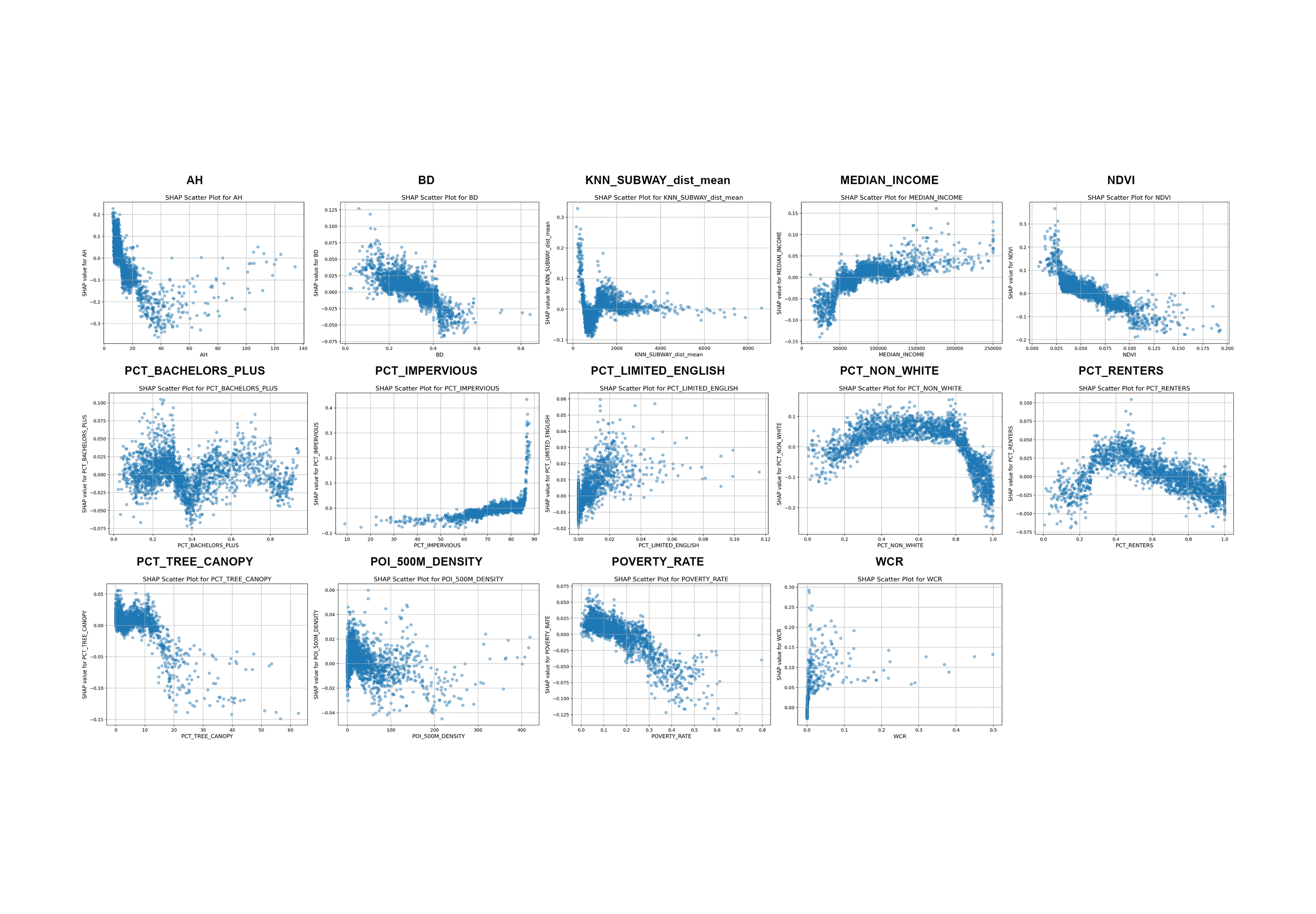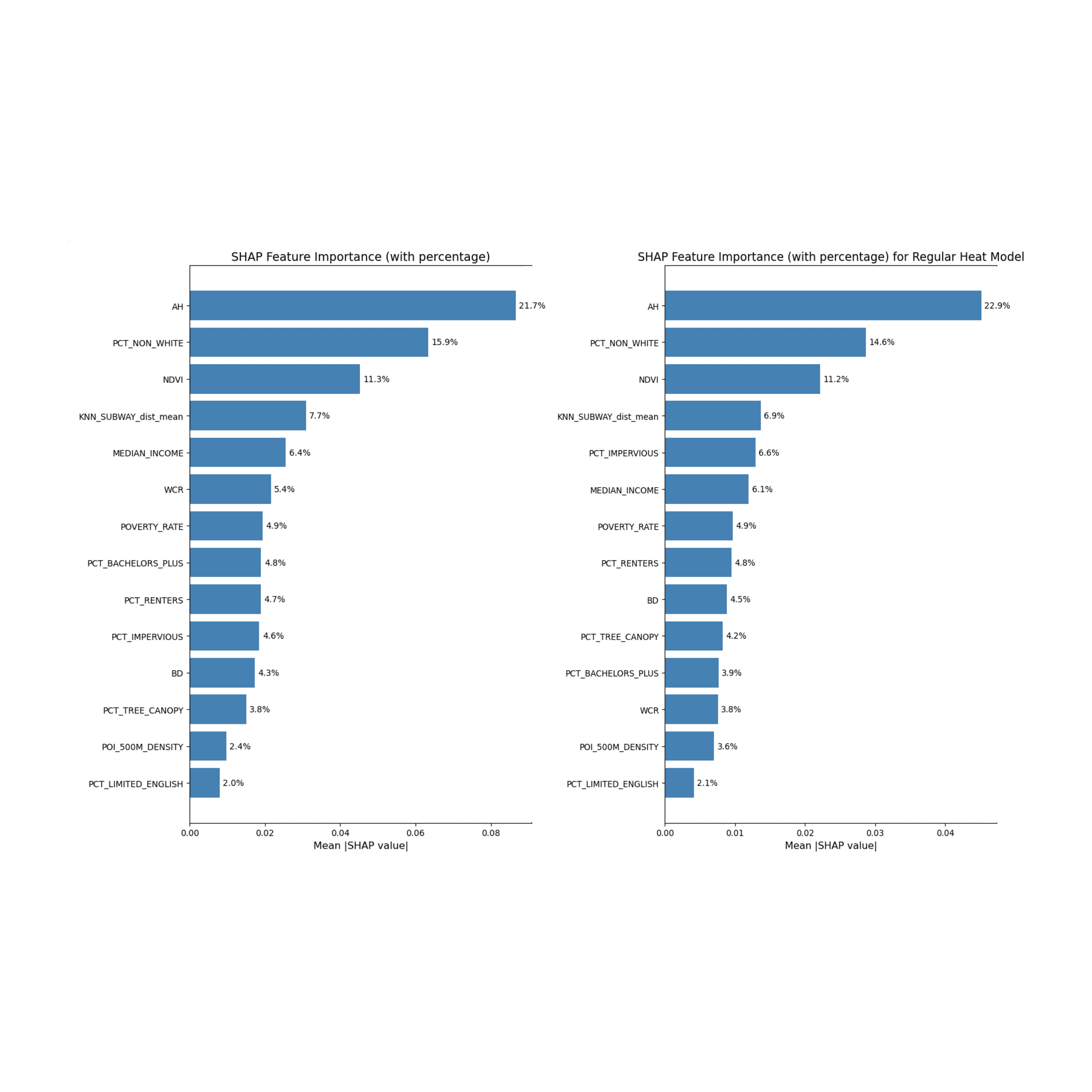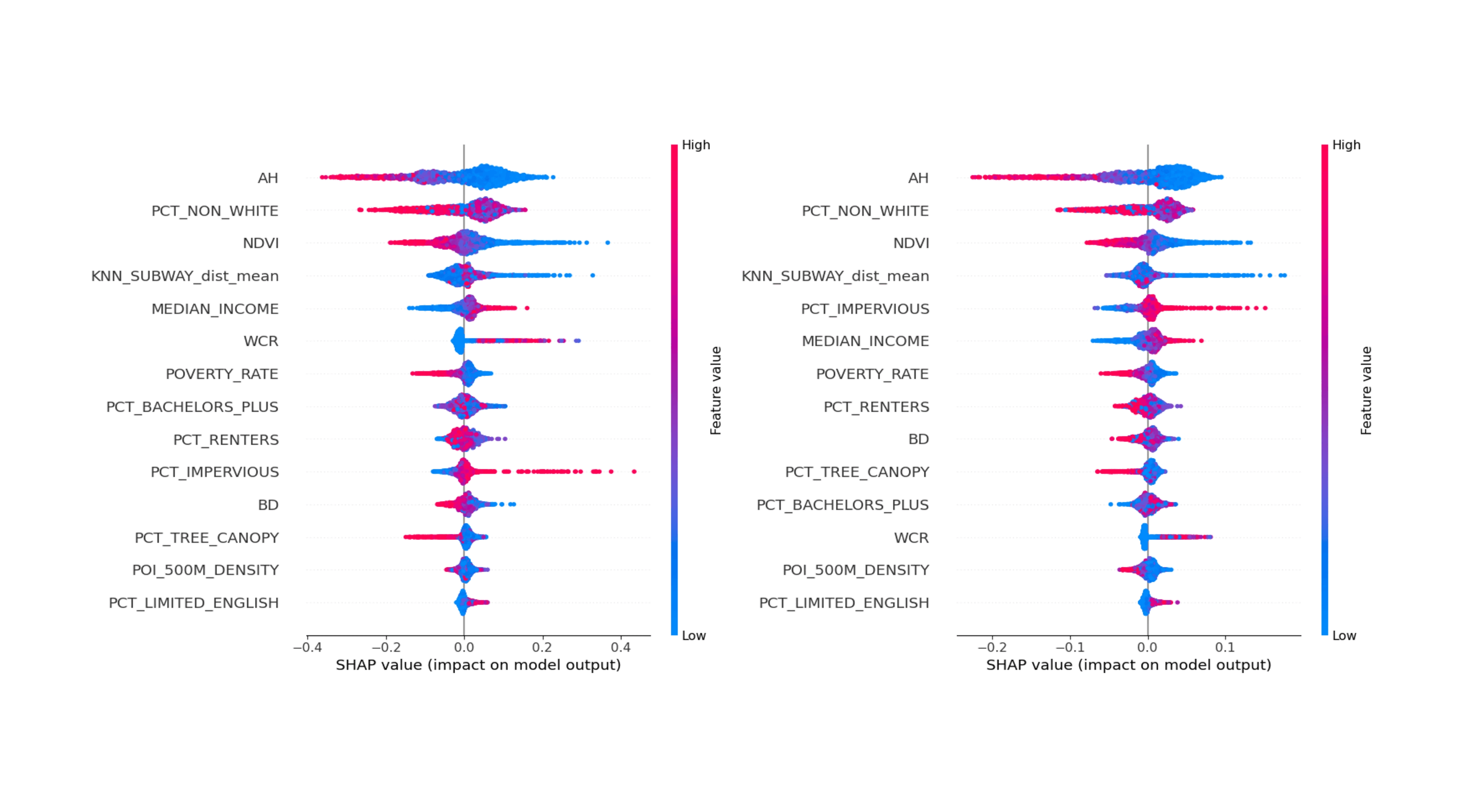 In this regard, the project is built upon geospatial data science techniques for modeling weekly QoL outcomes in extreme heat and normal heat conditions, as proxied by selected 311 report categories, using ordinary least squares (OLS) regression modeling as a baseline followed by modern machine learning (ML) models, and SHapley Additive exPlanations (SHAP) method to interpret.