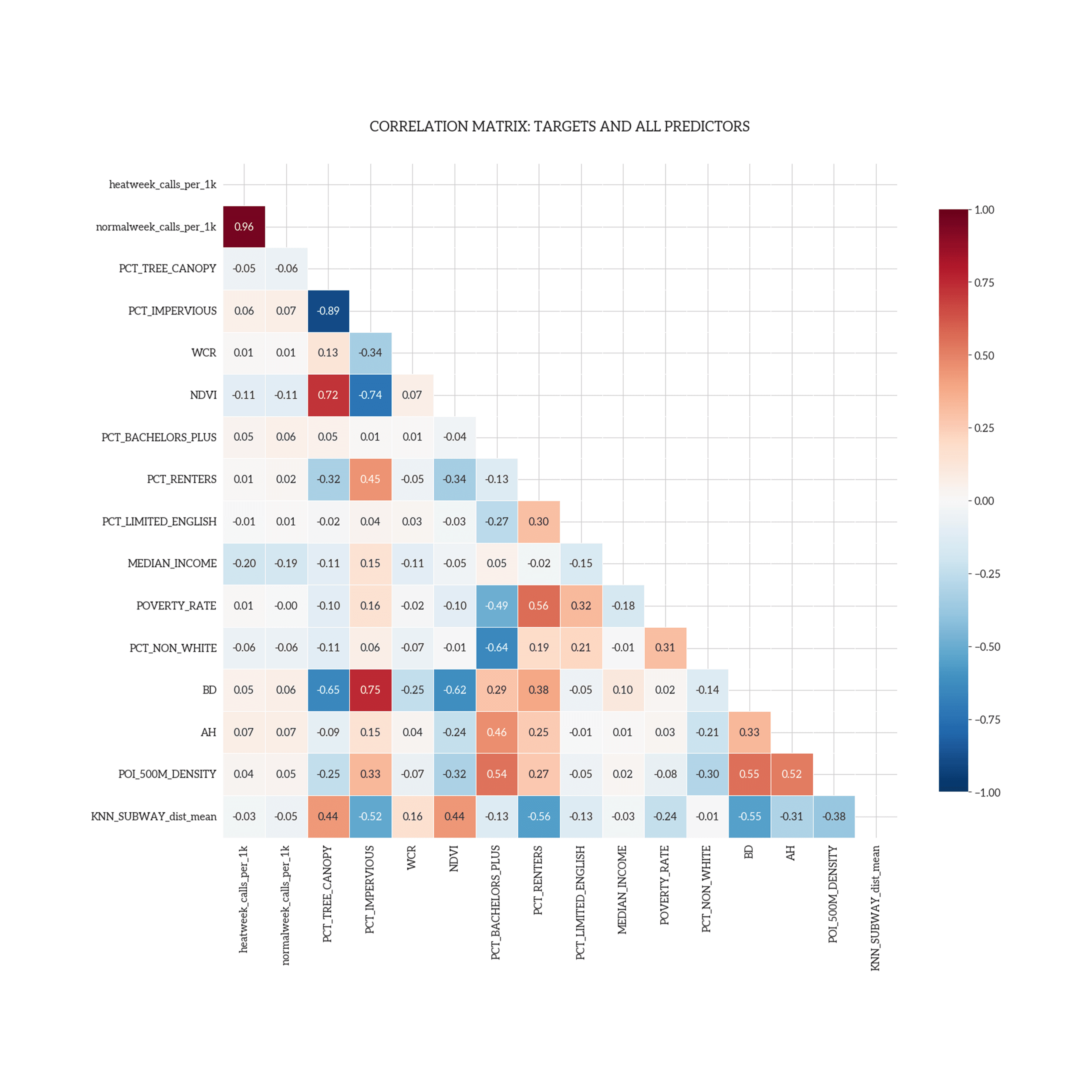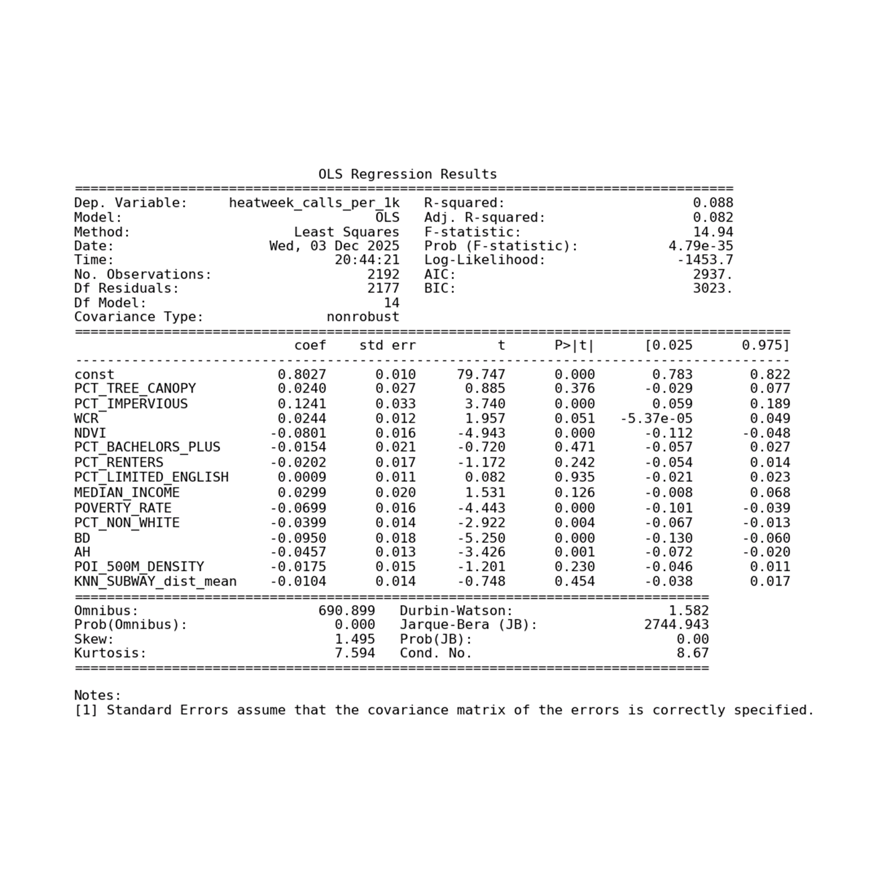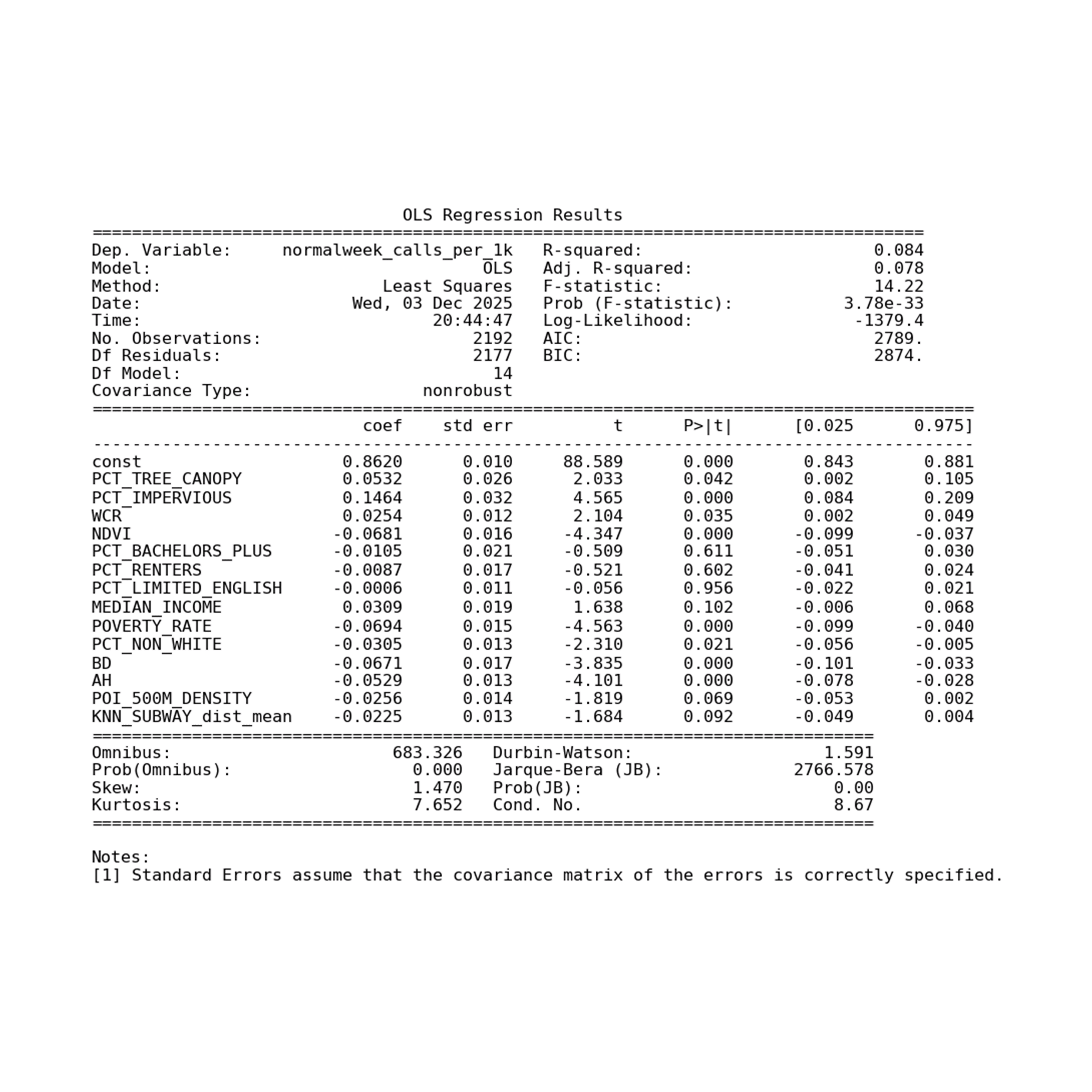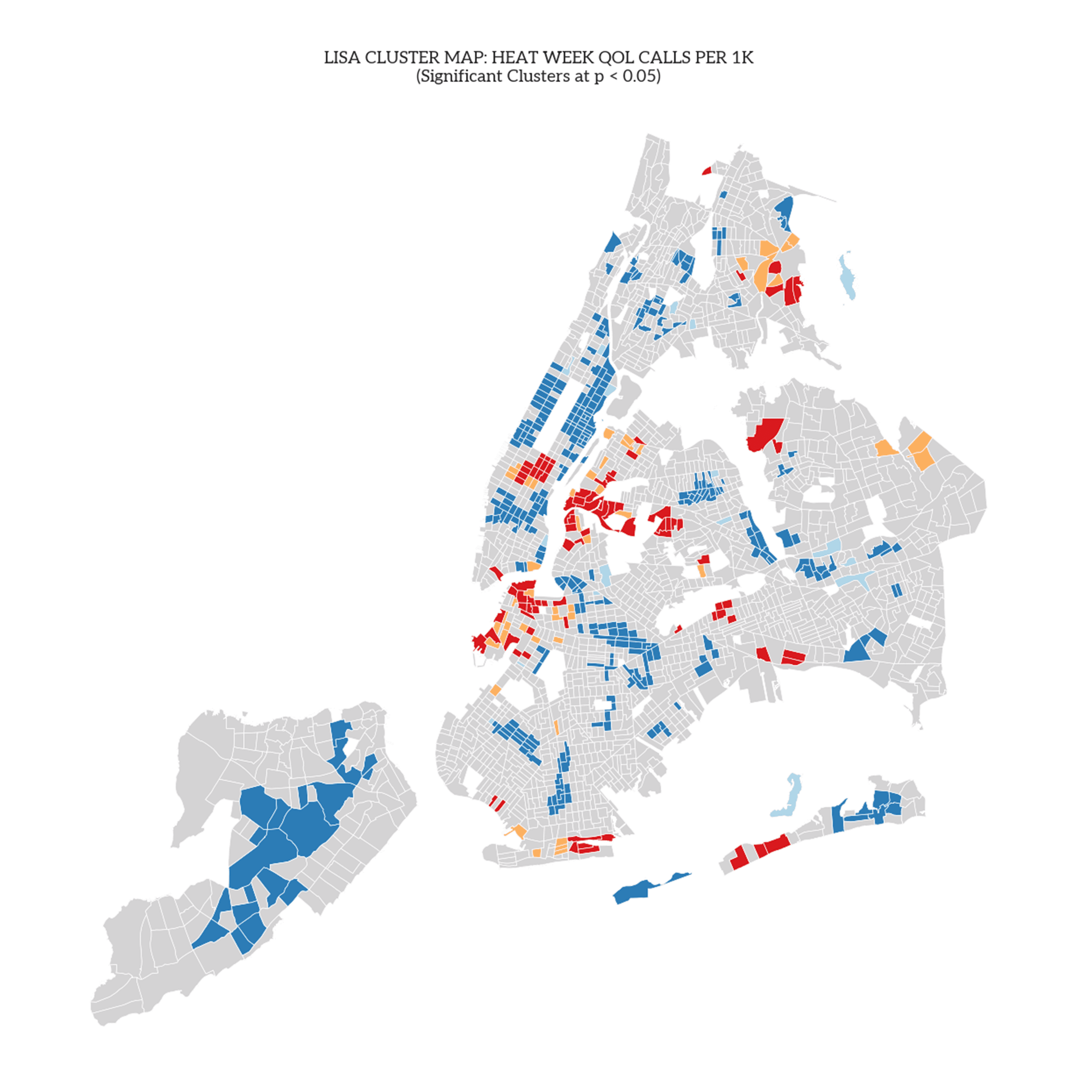 Within the context of this degradation is New York City’s 311 service, a complaint system that accepts reports via calls, emails, and website submissions that can reflect heat induced QoL behavior; it is a granular, real-time lens that provides understanding of how heat-related aggravation and other aspects can translate into observable, negative resident sentiment. This project in particular seeks to connect extreme heat versus normal heat weeks with environmental factors, socioeconomic conditions, and urban morphology to potentially explain QoL issues by different factors and their different performance during hotter periods.