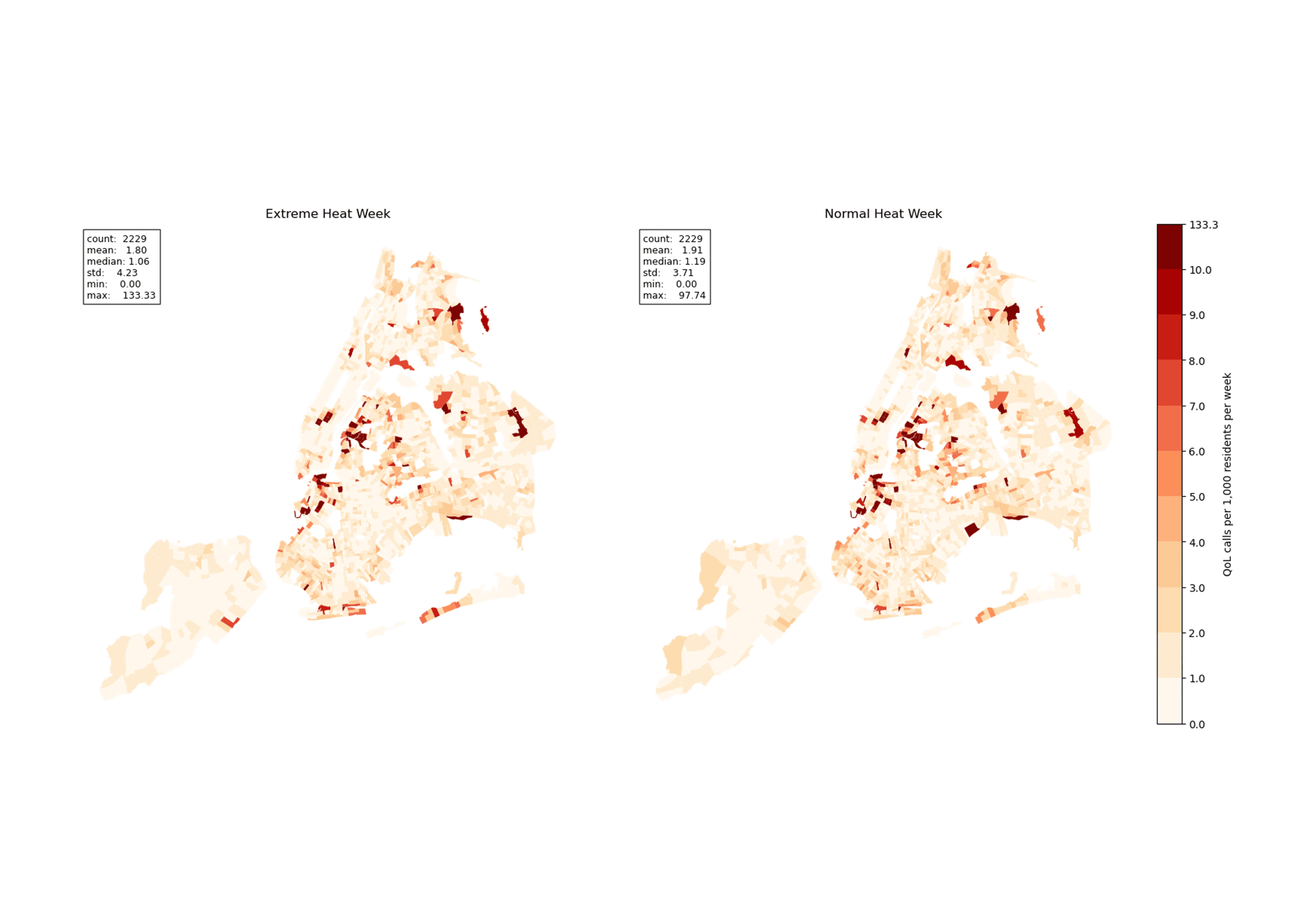 Extreme heat weather is one of the deadliest environmental hazards in the United States, the heat extreme heat events have significant negative impacts on urban public health and urban sustainable development. In dense, urban metropolitan cities like New York, extreme heat interacts with not just the built environment and local infrastructure conditions, but also the socioeconomic climate—extreme heat acts as one of the many architects shaping where service disruptions, complaints, and other surrounding stressors occur, degrading quality-of-life (QoL) for urban residents.